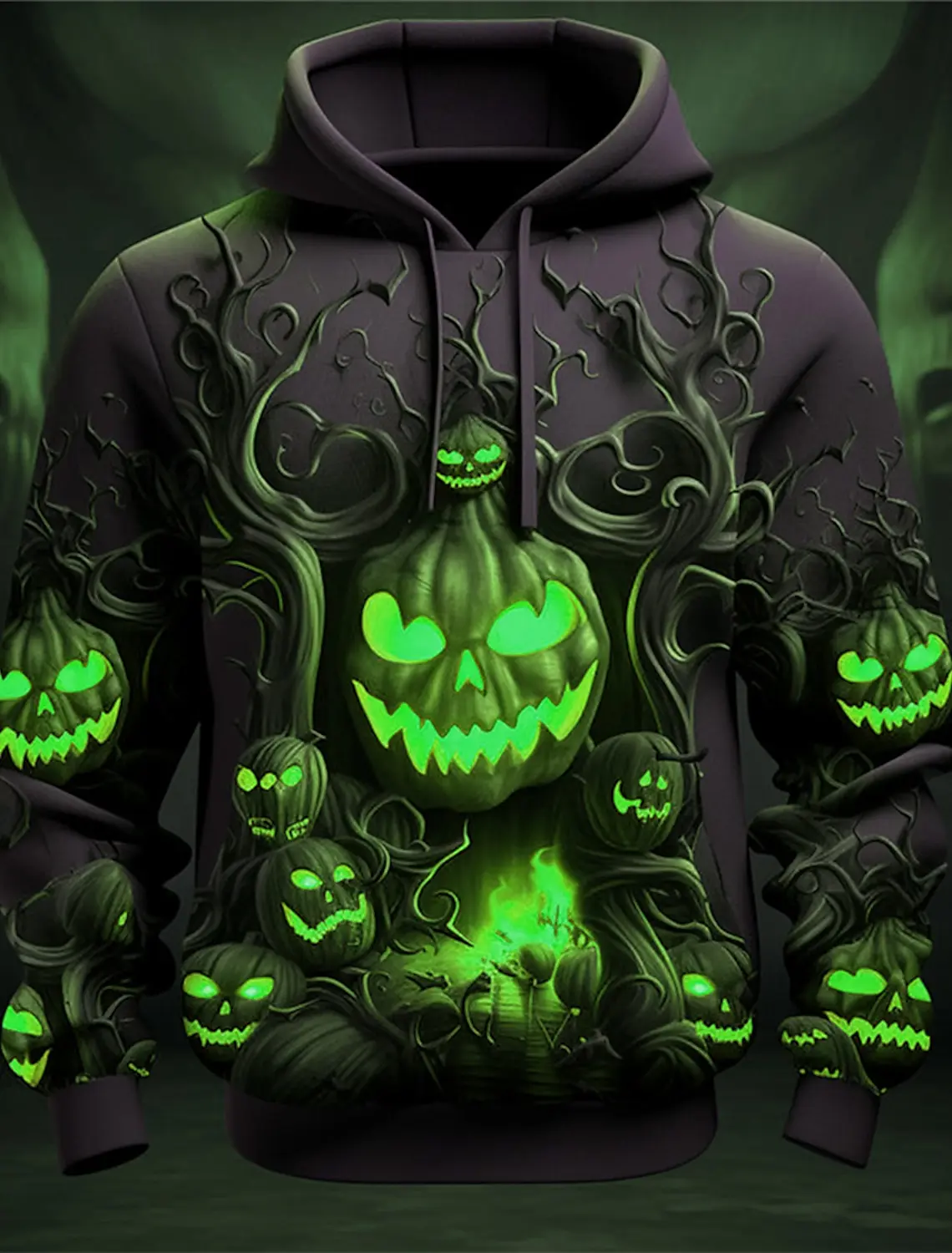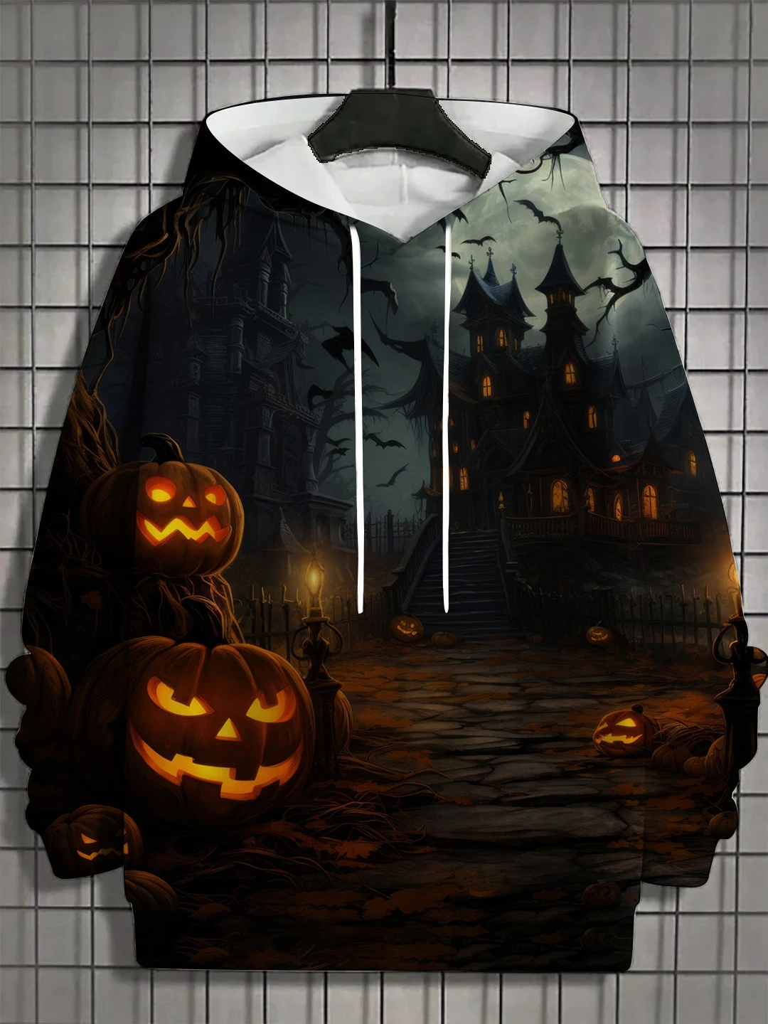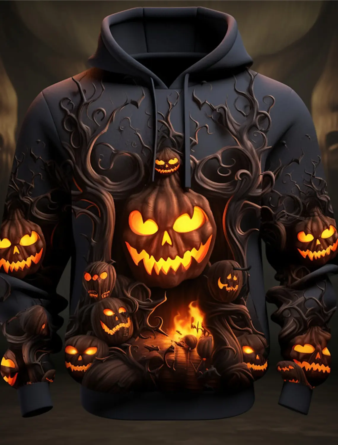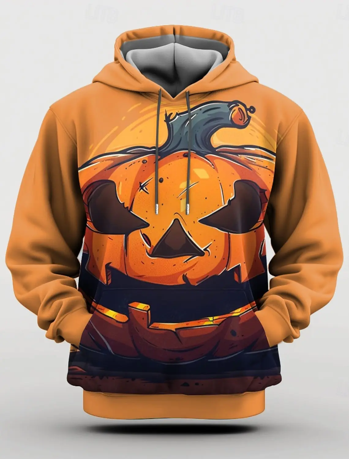 Halloween Men's Pattern Hoodie Pumpkin Print Daily Classic Casual Pullover Vacation Outing Hoodie Long Sleeve Hooded Pumpkin, Halloween & Skull