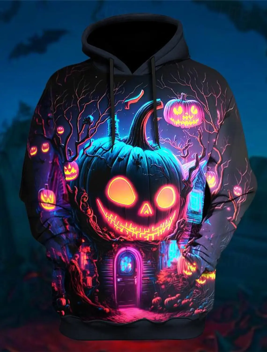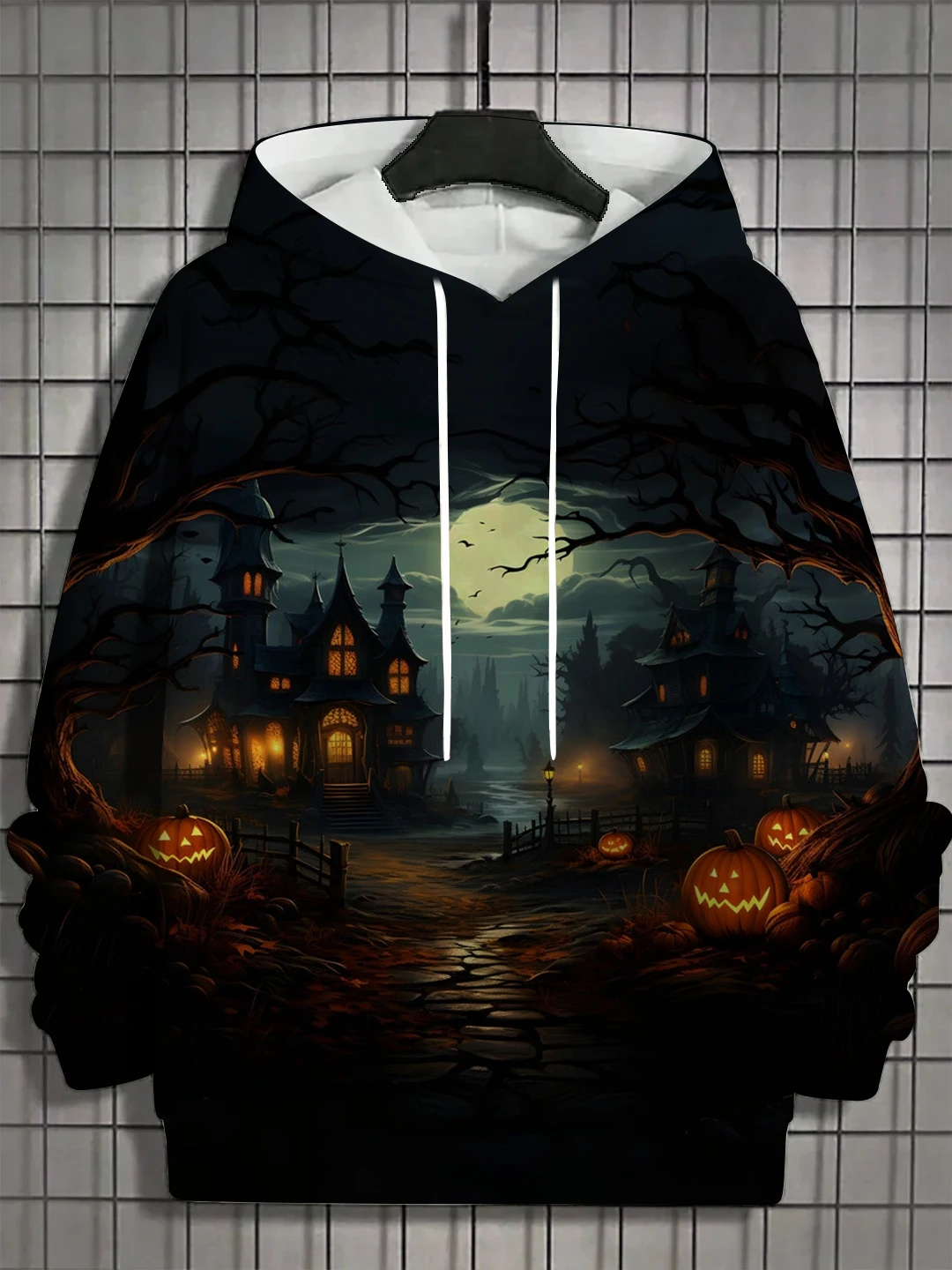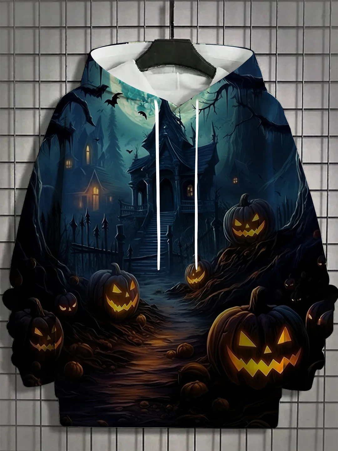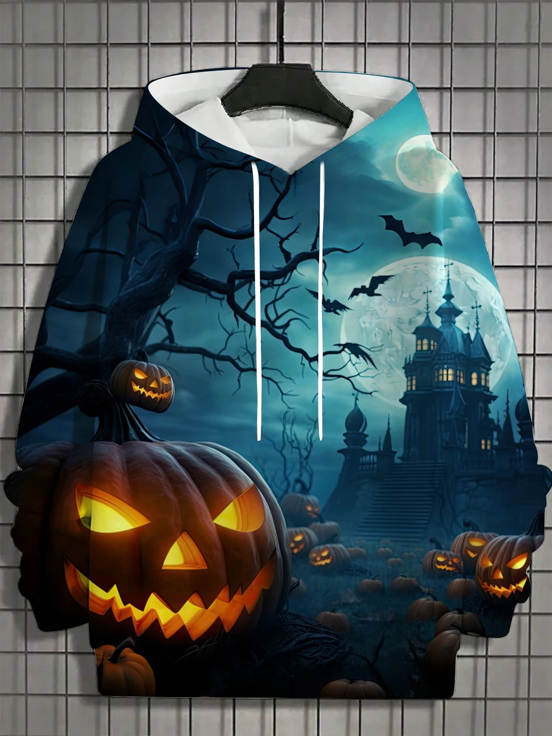 Halloween Men's Pattern Hoodie Pumpkin Print Daily Classic Casual Pullover Vacation Outing Hoodie Long Sleeve Hooded Pumpkin, Halloween & Skull