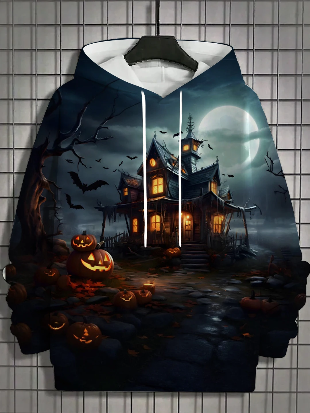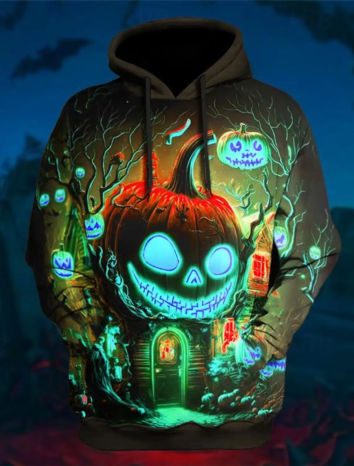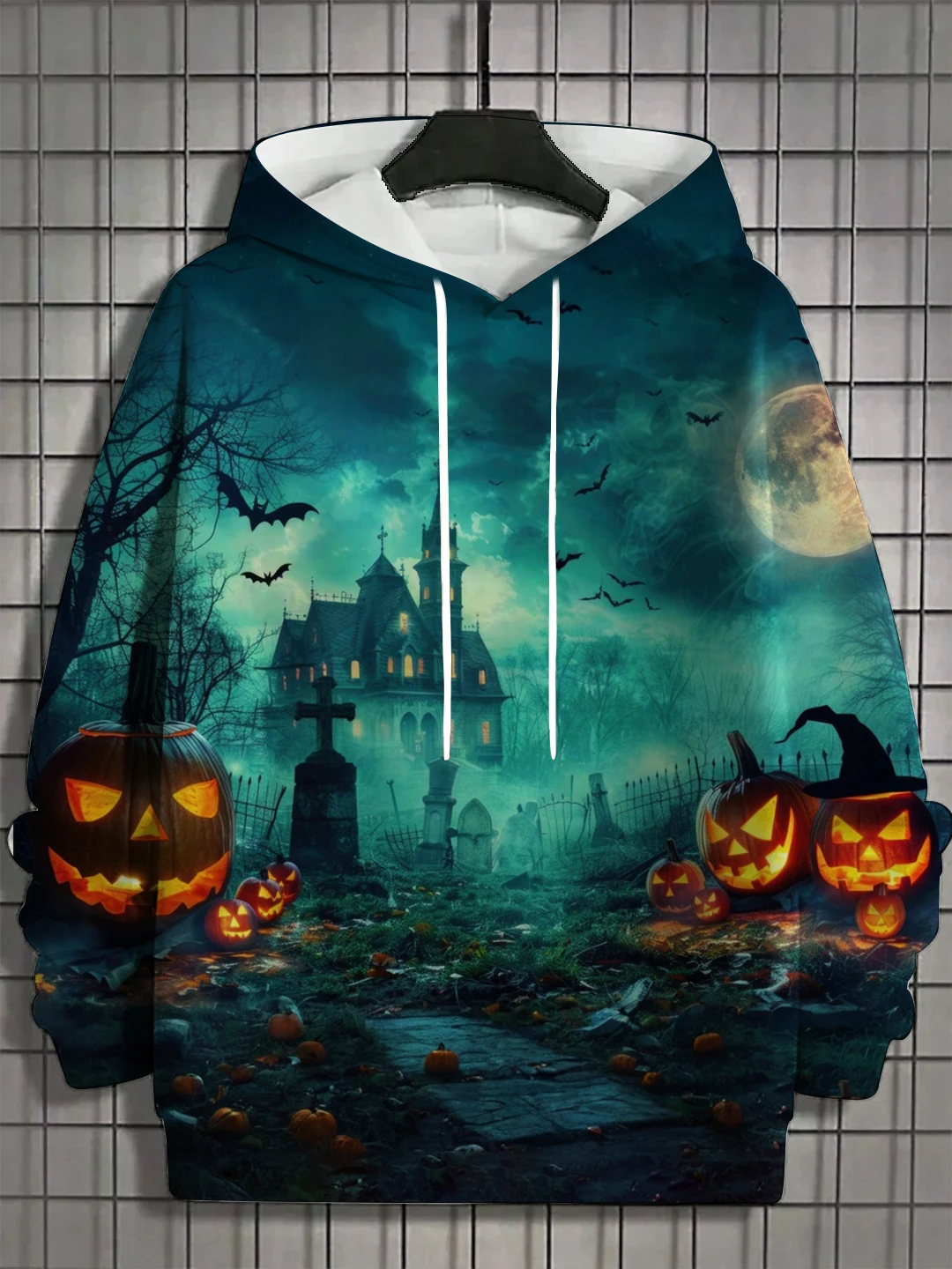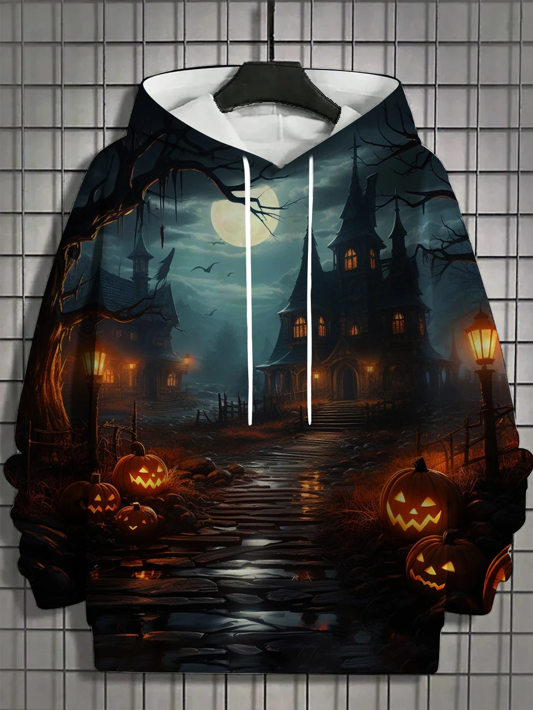 Halloween Men's Pattern Hoodie Pumpkin Print Daily Classic Casual Pullover Vacation Outing Hoodie Long Sleeve Hooded Pumpkin, Halloween & Skull
