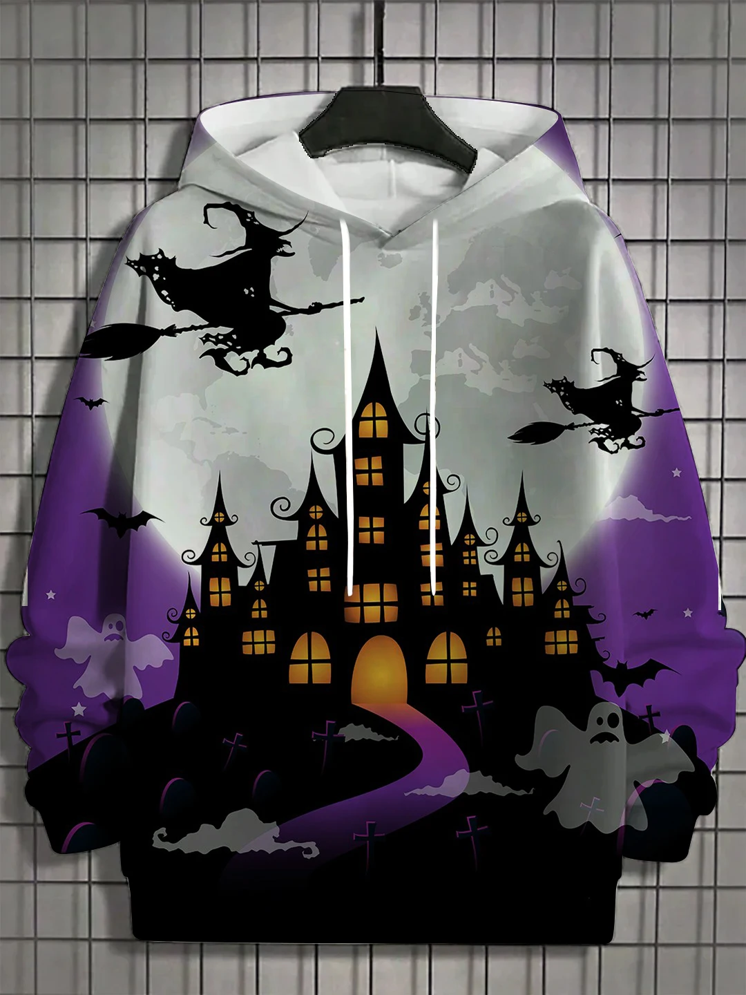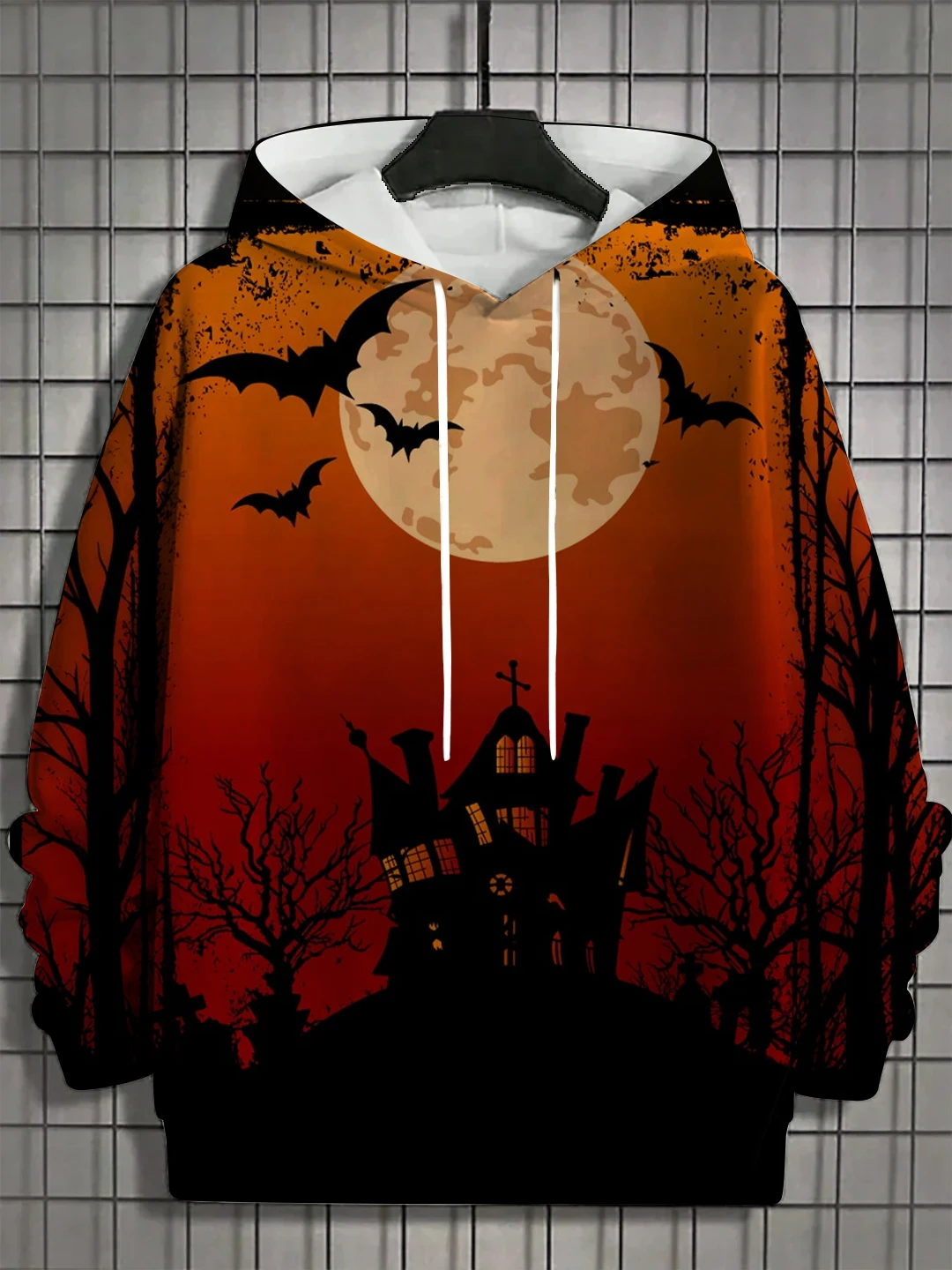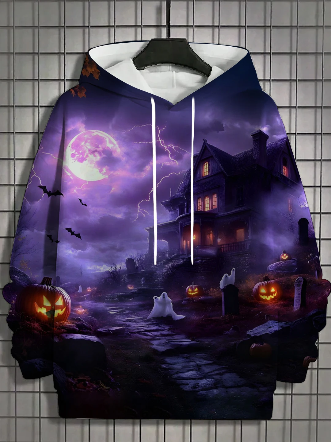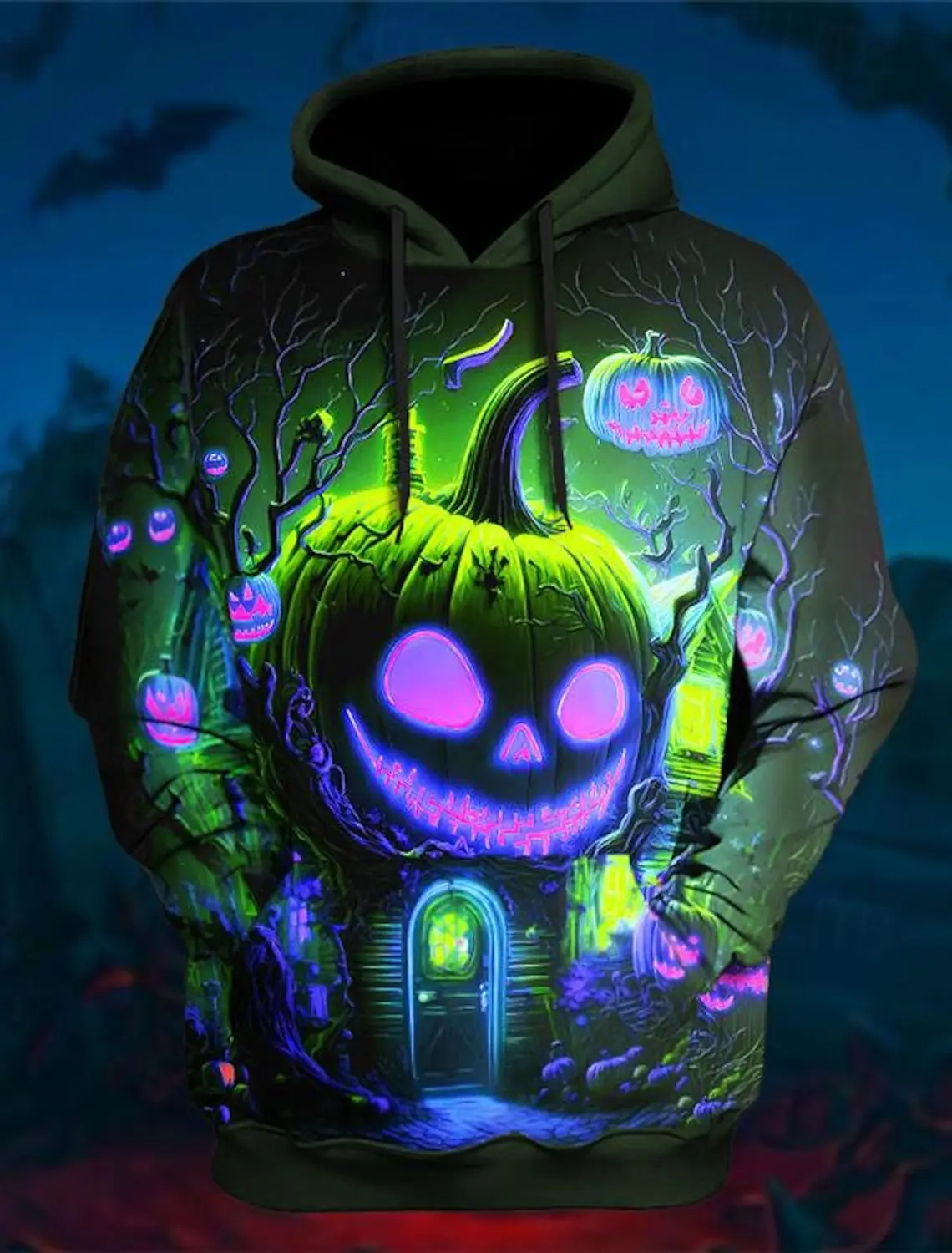 Halloween Men's Pattern Hoodie Pumpkin Print Daily Classic Casual Pullover Vacation Outing Hoodie Long Sleeve Hooded Pumpkin, Halloween & Skull