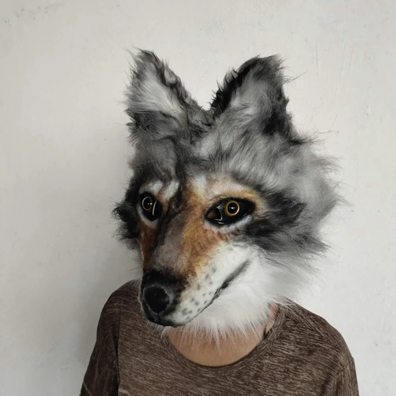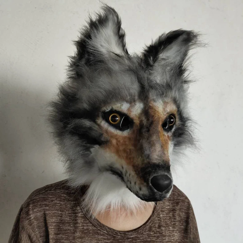 Dog Latex Mask Plush Toys Carnival Cosplay Party Props Adult Full Face Disguise Halloween Costume Funny Fur Animal Wolf Masks, Wolf Lover