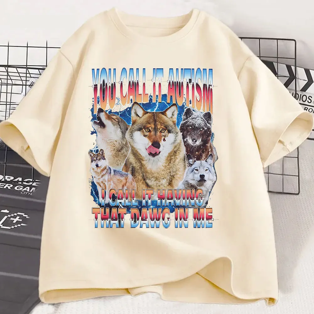 You Call It Autism I Call It Having That Dawg in Me T Shirt Funny Wolf Meme T Shirts Men Women 100% Cotton Short Sleeve T-shirts, Wolf lover