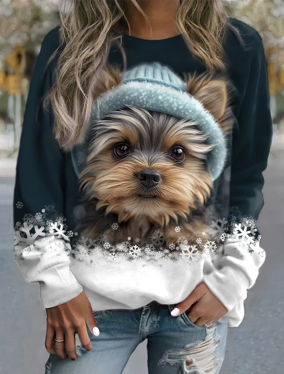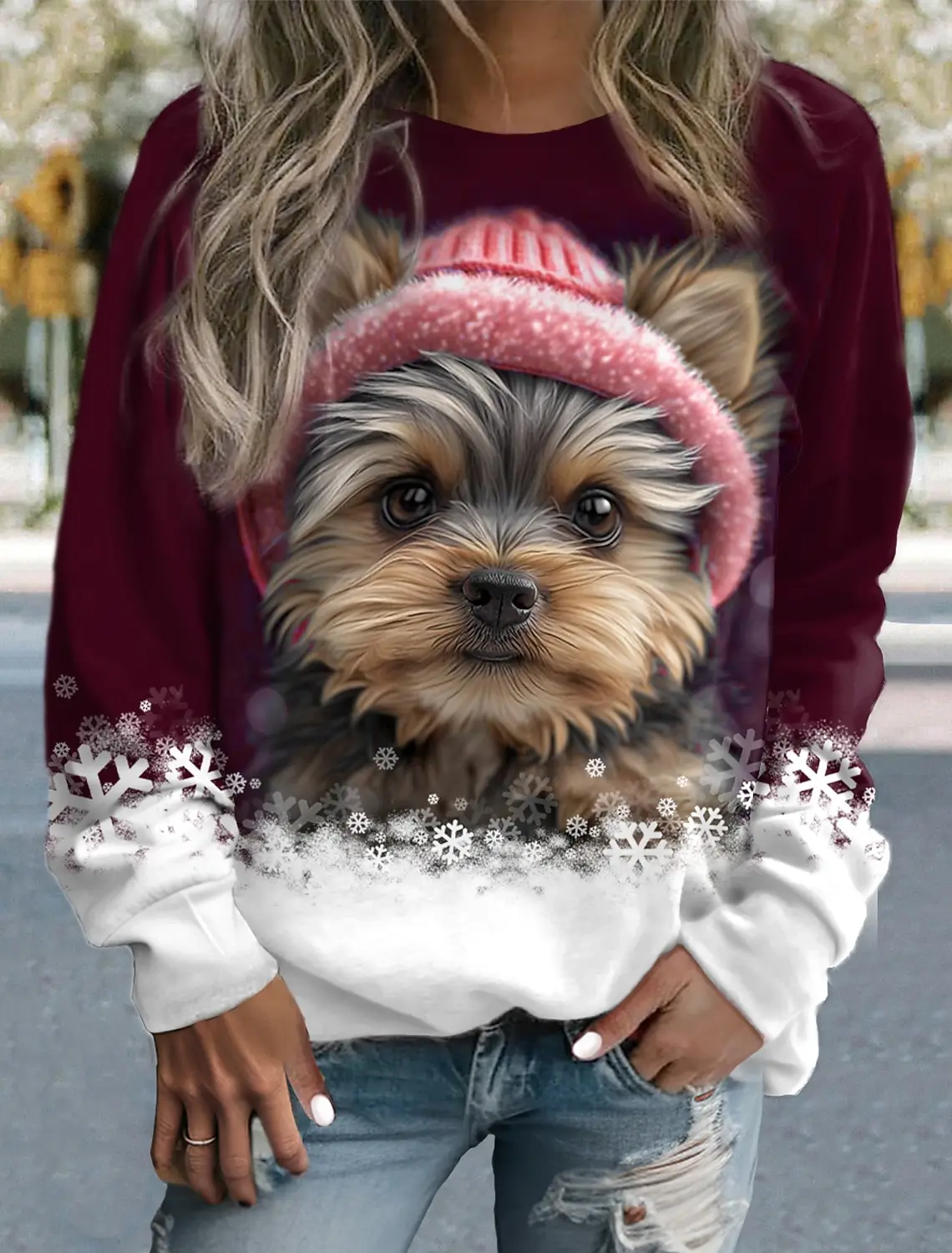 Women's Sweatshirt Pullover Dog Casual Sports Black Red Blue Active Sportswear 3D Print Micro-elastic Round Neck Long Sleeve Top, Yorkshire Terrier Lover