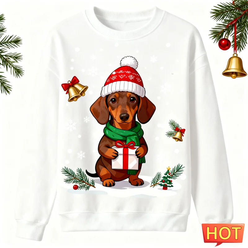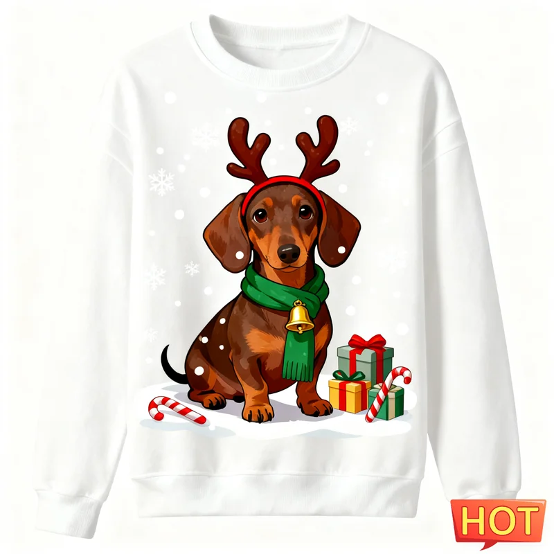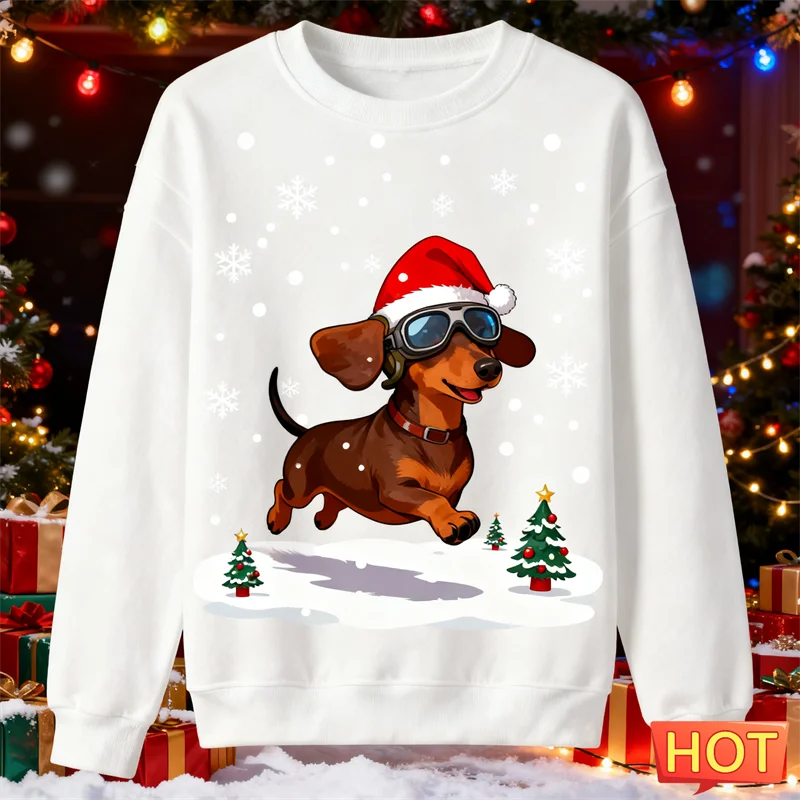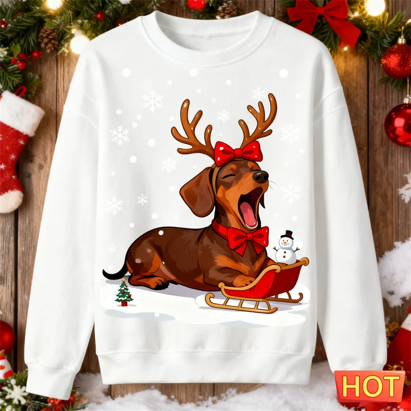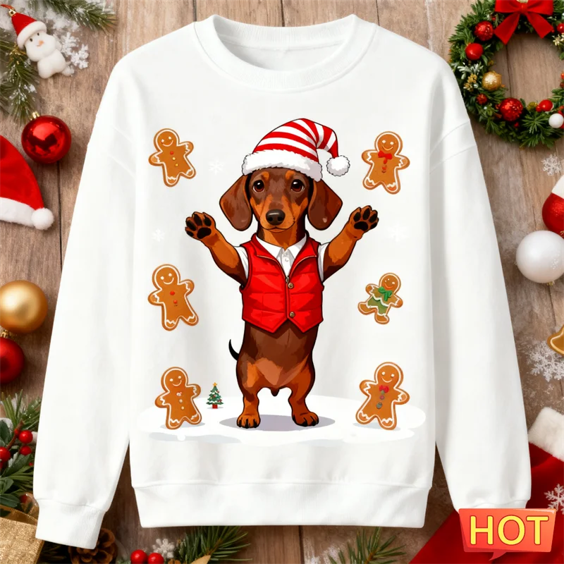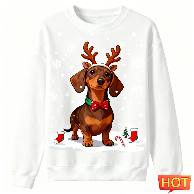 2026 New Dachshund Graphic Ugly Christmas Sweater Fashion Crew Neck Dog 3D Printed Sweatshirts Loose Breathable Unisex Pullovers, Dachshund Lover